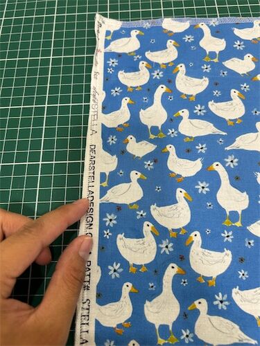 有言実行、早速取り掛かりました! 1個目 ナカムラさんで購入した、USA生地を使います。 可愛いアヒル?ガチョウ?柄です。 ドケチ裁断でファスナー部分の縫い代は生地の端っこの白いところまで使います(笑) 本当は第二子ちゃんの母子手帳ケースに使おうかと…